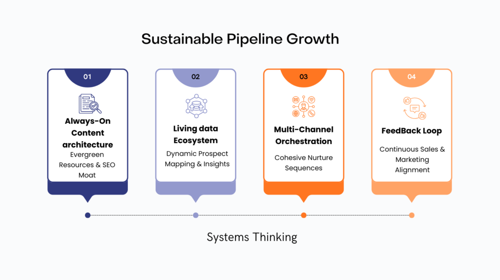A sustainable system is an integrated data loop. The system leverages content, SEO, and automated nurturing sequences to educate the market on a consistent basis.