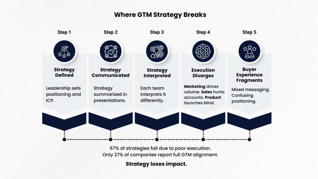 GTM strategy execution breaks at predictable junctures where strategy encounters operational reality.